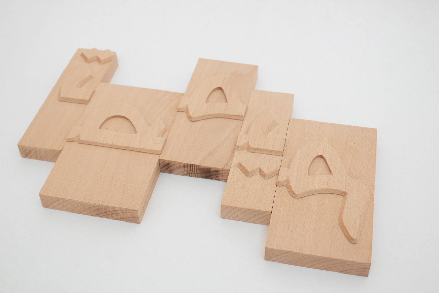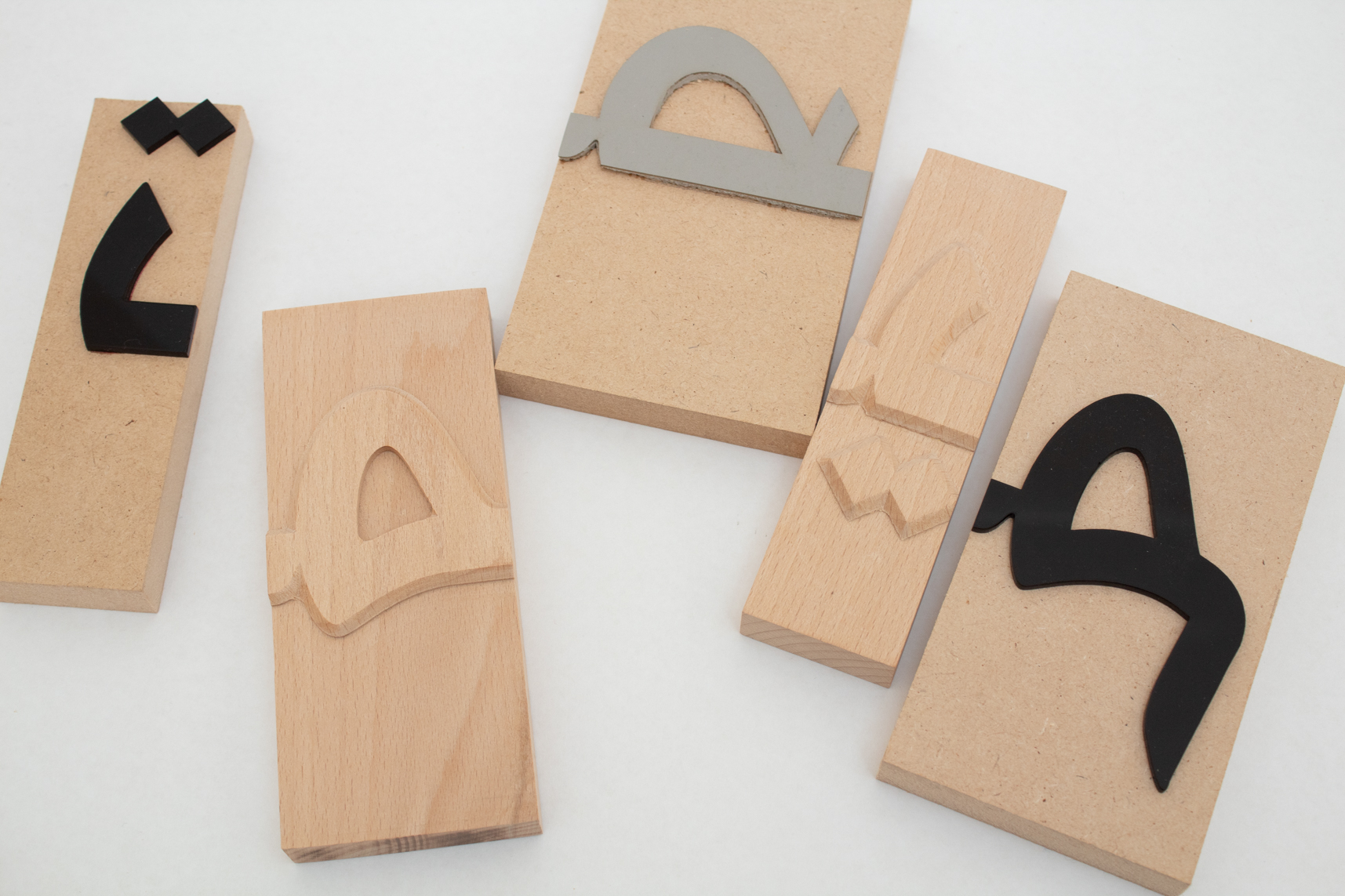 Arabic type blocks made using different materials: wood, acrylic, and linoleum. main goal is to Create a system for Arabic typography to be used in letterpress.