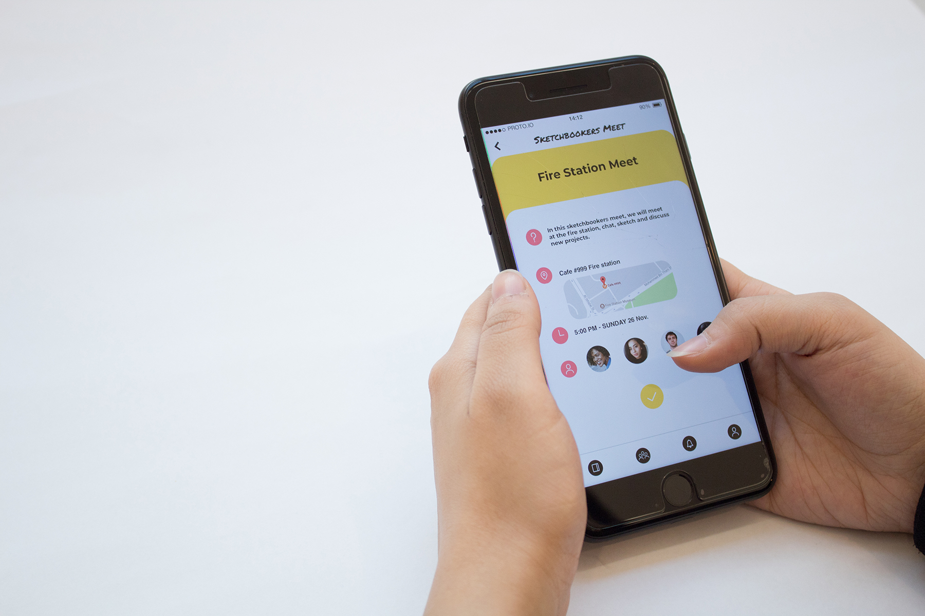 an application to help people who are interested in sketching to meet up, join meet ups, create new ones and purchase materials.